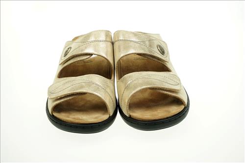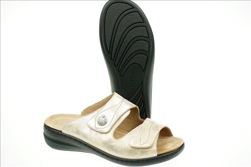 Solidus slipper in goud leer met verstelbare sluiting. Solidus comfortschoenen zijn gemaakt van zachte, comfortabele materialen die zorgen voor een perfecte drukverdeling. Ook zijn er elastische materialen in de schoenen van Solidus verwerkt, zodat knellende schoenen verleden tijd zijn. Het voetbed van alle Solidus schoenen is daarnaast anatomisch gevormd en uitneembaar, zodat ze ook geschikt zijn om uw eigen steunzolen in te plaatsen. Naast comfort, staat een trendy look bij Solidus hoog in het vaandel. Solidus schoenen zijn dan ook zowel comfortabel als trendy.