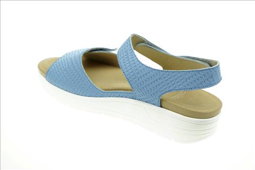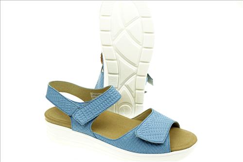 Solidus sandaal in lichtblauw geprint leer met verstelbare sluiting. Deze sandalen zijn verkrijgbaar vanaf maat 37.