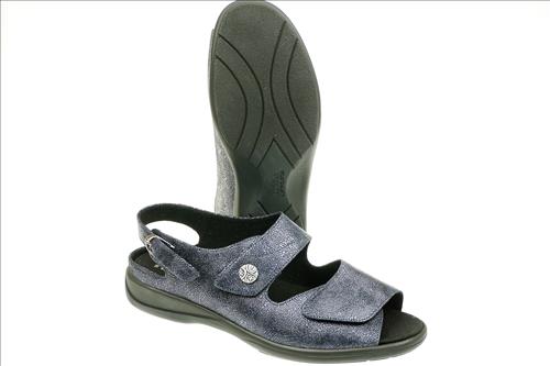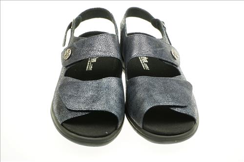 Solidus sandaal in blauw metallic leer met verstelbare sluiting.