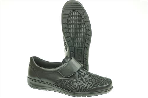 Solidus schoen in zwart leer/stretchleer. Deze schoenen zijn verkrijgbaar vanaf maat 37.