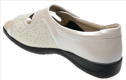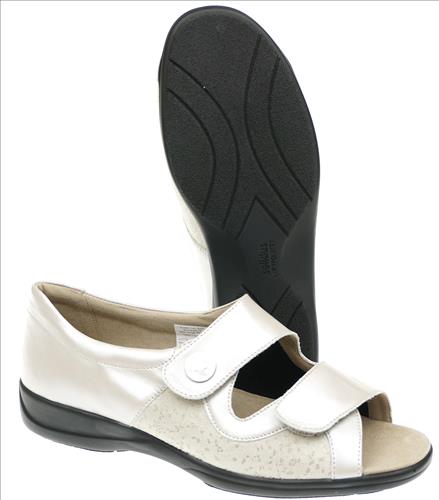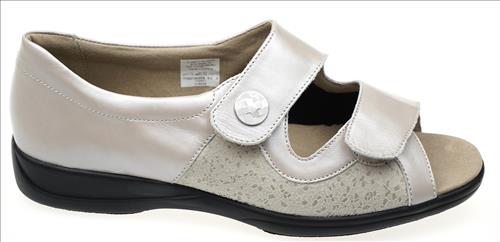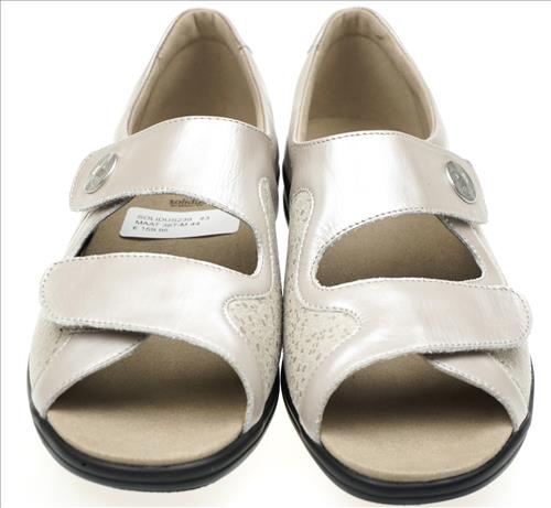 Solidus sandaal in beige leer/stretch met dichte hiel en verstelbare sluiting. Deze schoenen zijn op voorraad vanaf maat 37.