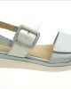 Tamaris sandaal in lichtblauw/wit leer met verstelbare sluiting.
