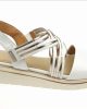 Tamaris sandaal in wit/goud leer met verstelbare sluiting.