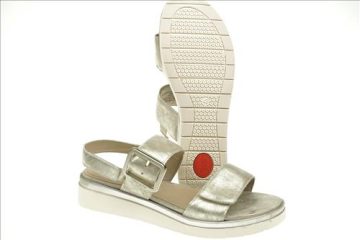 Tamaris sandaal in licht brons leer met verstelbare sluiting.