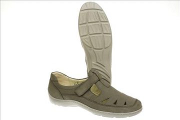 Waldlaufer schoen in taupe nubuck met verstelbare sluiting.
