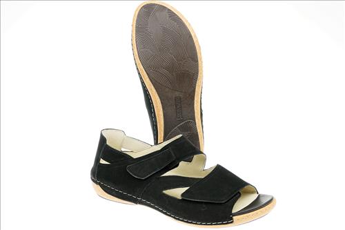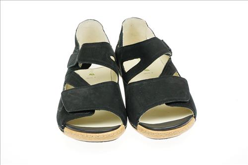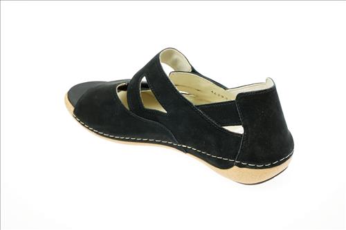 Waldlaufer sandaal in zwart suede met dichte hiel en verstelbare sluiting. Deze schoenen zijn verkrijgbaar vanaf maat 37.