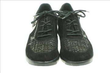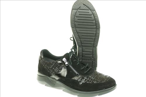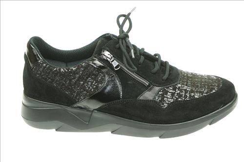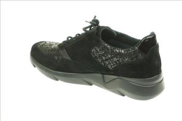 Waldlaufer veterschoen in zwart suede/stretch. Deze schoenen zijn op voorraad vanaf maat 37.