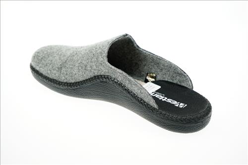 Westland slipper in grijs vilt. Thuiskomen na een lange dag hard werken is al fijn, maar het wordt nog fijner als u bij thuiskomst uw favoriete paar Westland pantoffels kunt aandoen. Westland pantoffels hebben een ongekend goede pasvorm en zijn er zowel voor dames als voor heren. Behalve het comfort dat Westland pantoffels te bieden hebben, houden Westland pantoffels uw voeten ook perfect op temperatuur. Koude voeten in de winter horen dan definitief ook tot de verleden tijd.