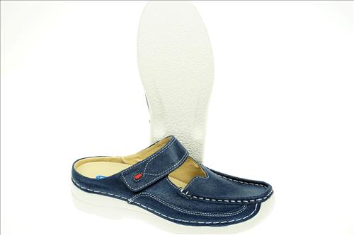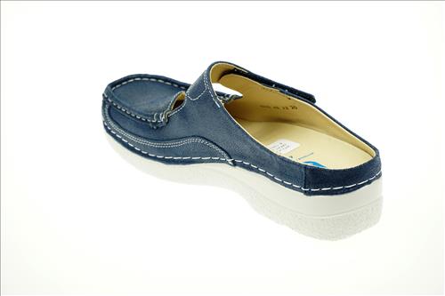 Wolky slipper in denimblauw leer. Deze slippers zijn verkrijgbaar vanaf maat 37. Wil je het beste voor je voeten in combinatie met een modieuze look? Dan zit je goed met Wolky schoenen Dit merk staat bekend om de perfecte balans tussen comfort, design en kwaliteit en ze hebben duurzaamheid hoog in het vaandel. Wolky besteed uitermate veel aandacht aan het voetbed, de leest en de pasvorm en dat is direct voelbaar zodra je in deze damesschoenen stapt. Met Wolky breng je dus niet alleen je voeten een plezier, maar draag je ook bij aan een betere wereld en dat allemaal in een modieus design. Wat wil je nog meer?