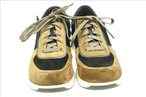 Xsensible/Stretchwalker Lima sneaker in bruin/zwart combinatie. Deze schoenen zijn op voorraad vanaf maat 37.