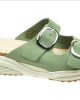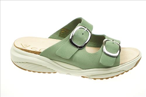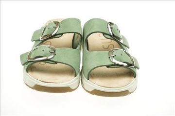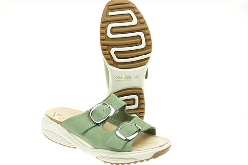 Xsensible Mykonos slipper in groen nubuck met verstelbare sluiting. Deze slippers zijn op voorraad vanaf maat 37.