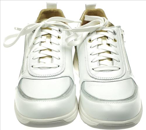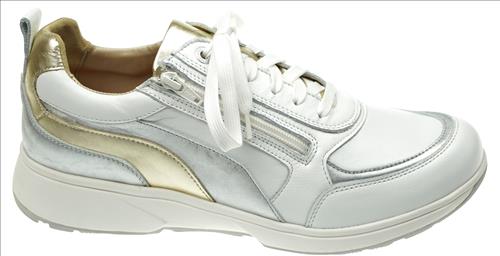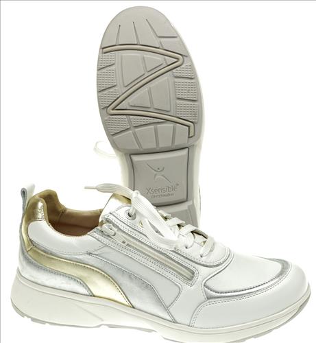 Xsensible/Stretchwalker Valletta sneaker in wit/zilver/goud combinatie. Deze schoenen zijn op voorraad vanaf maat 38.
